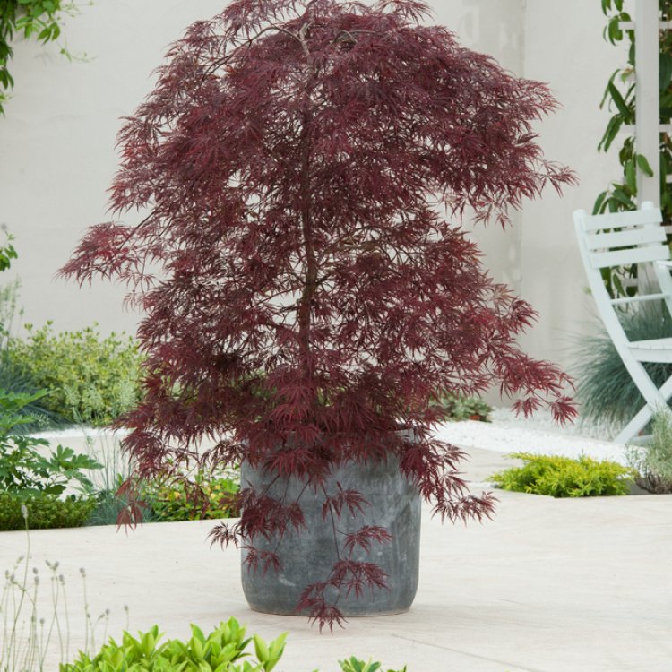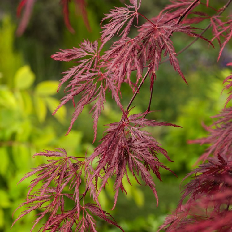 Acer palmatum ‘Inaba-shidare’ showcases deeply dissected, vibrant foliage, bringing exceptional grace and structure to UK gardens.