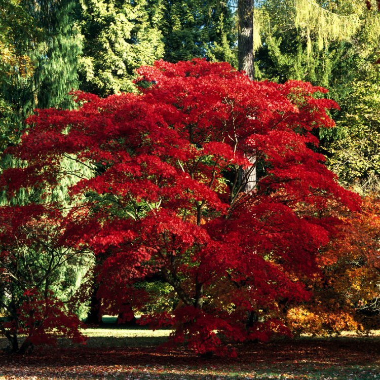 Gardeners frequently use Acer palmatum as a specimen tree. This allows its unique form and colour to stand out prominently. Its compact size makes it perfect for smaller gardens, courtyards, or larger containers. Additionally, it thrives in mixed borders. Here, foliage contrasts beautifully with evergreen shrubs or softer perennials.