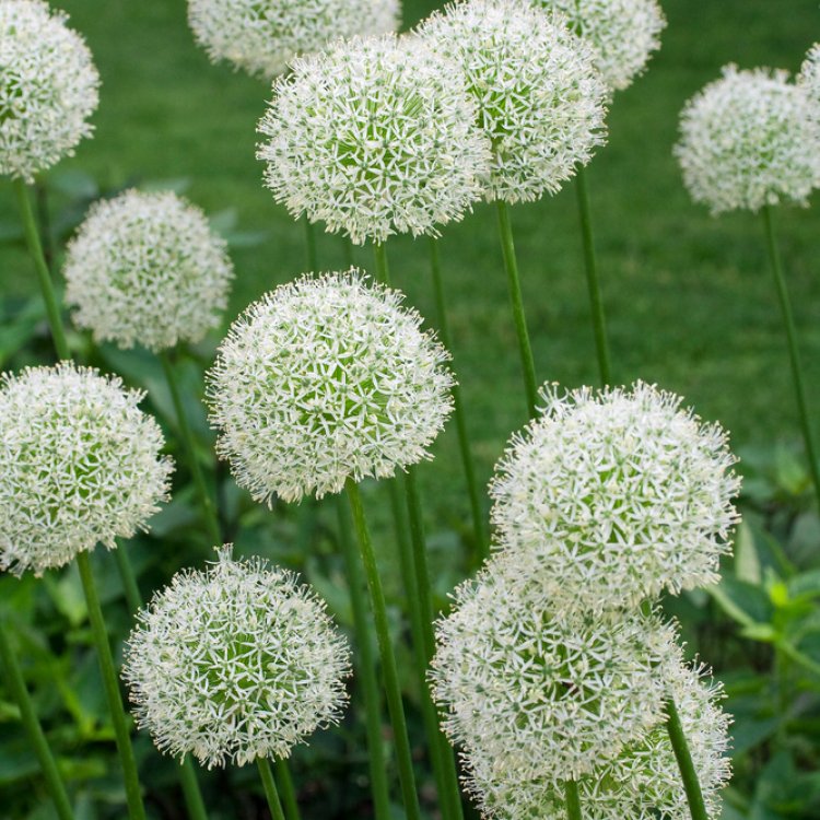 Allium stipitatum ‘Mount Everest’ is a stunning ornamental onion, producing magnificent pure white spherical flower heads on tall stems. It offers superb vertical accent and attracts bees, making it a brilliant choice for UK garden borders and cut flower displays.