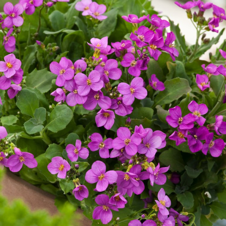 Brighten your spring garden with Arabis caucasica ‘Rosea’, a delightful rock cress that blankets spaces in a vibrant flush of rosy-pink blooms.
