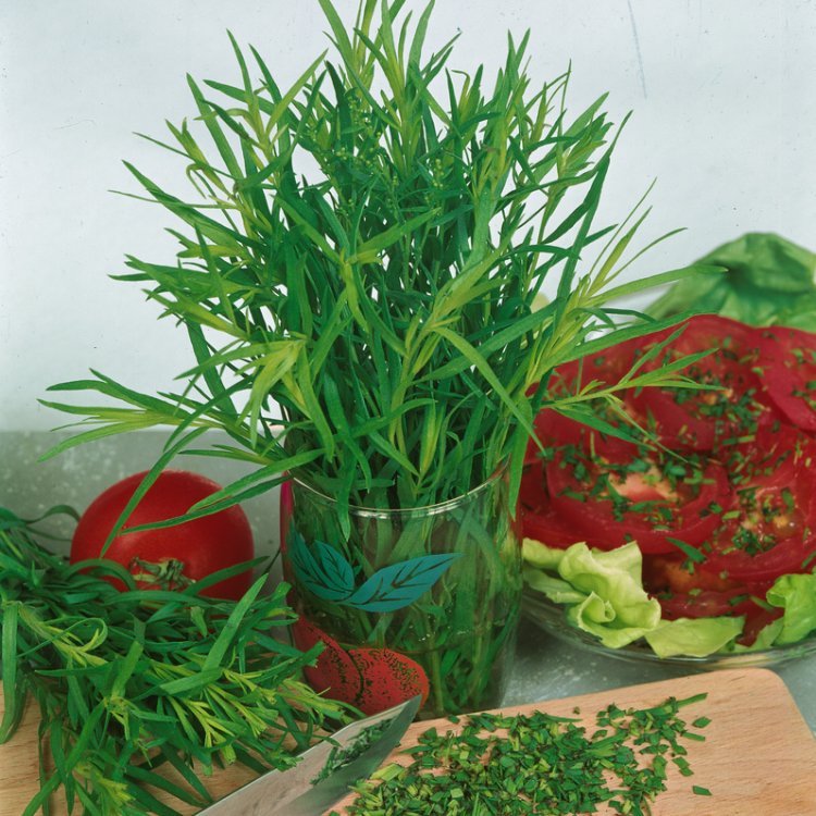 Artemisia dracunculus thrives in a sunny location with well-drained soil. Water regularly after planting until established, then reduce frequency, allowing the soil to dry slightly between waterings. Avoid waterlogging, especially in winter. Mulch in spring with compost to provide nutrients. Harvest leaves regularly by pinching off the tips; this encourages bushier growth and delays flowering, preserving the best flavour. Cut back faded flower stems (if present) and tired foliage in late autumn or early spring to encourage vigorous new growth. Divide established clumps every 3-4 years in spring to maintain plant vigour. Protect plants in very cold regions or during harsh winters by applying a thick mulch.