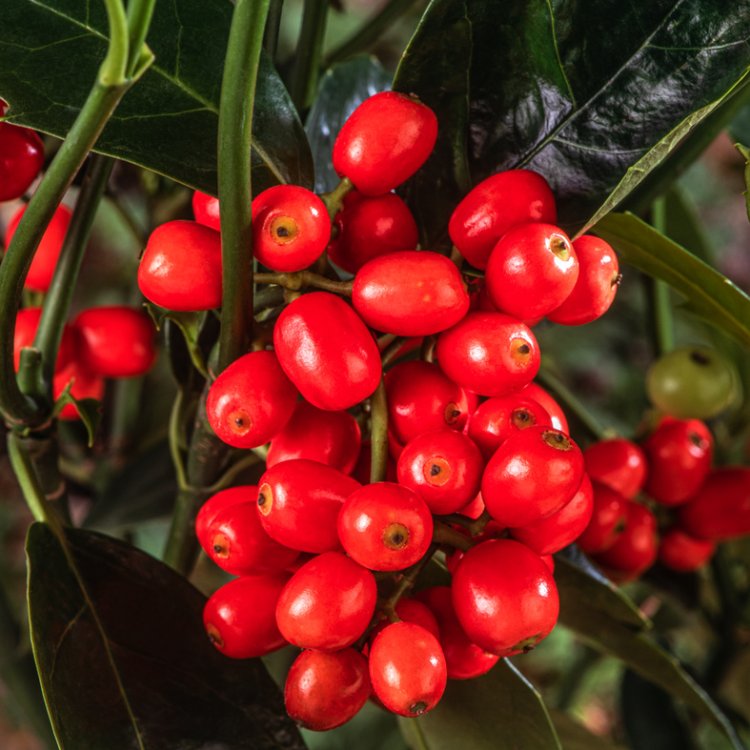 • Produces abundant bright red berries in autumn and winter (when a male pollinator is nearby).