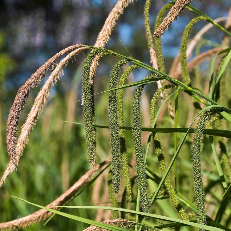 Carex pendula, known as Pendulous Sedge, offers an elegant, architectural presence, enhancing damp, shady areas with its beautiful, arching foliage.