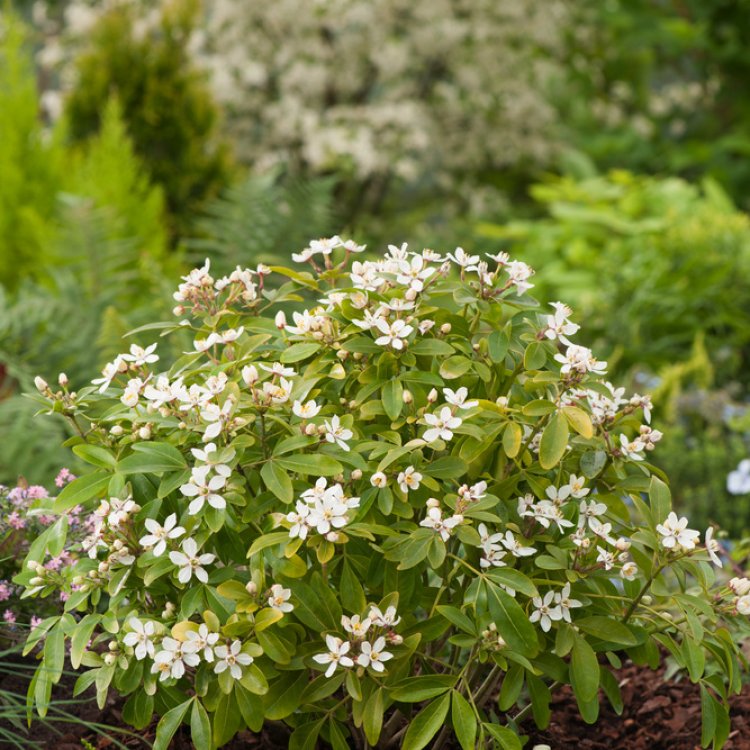 Choisya ternata, the Mexican Orange Blossom, offers year-round evergreen foliage and fragrant white flowers in spring, often repeating in autumn. This hardy, low-maintenance shrub attracts pollinators and adds a delightful citrus scent to any UK garden.