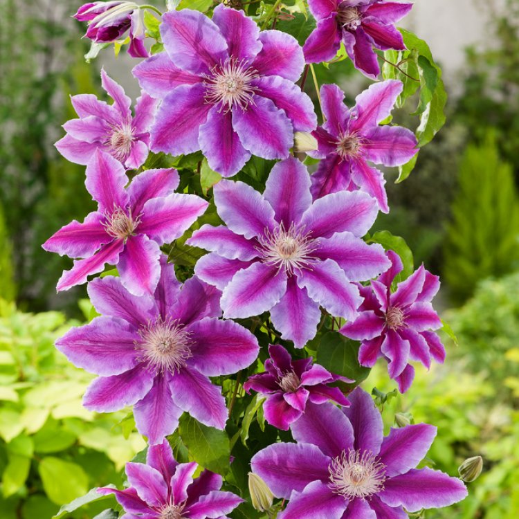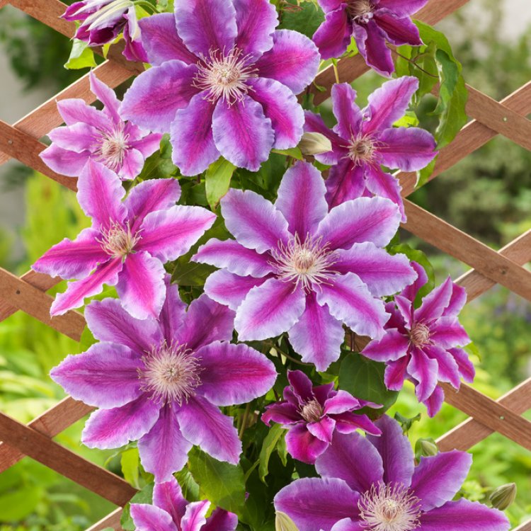 This striking clematis cultivar is a favourite among gardeners across the UK. It offers a spectacular display of colour throughout the growing season. Boasting large, showy blooms, it easily transforms walls, fences, and pergolas into breathtaking floral features. Moreover, its relatively compact size makes it suitable for various garden designs.