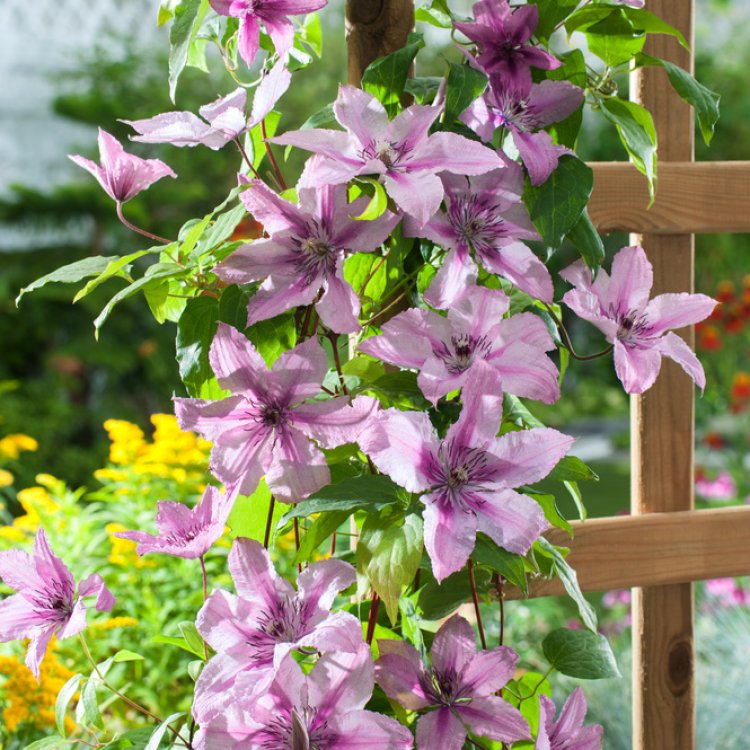 Clematis ‘Hagley Hybrid’ is a beautiful, free-flowering deciduous climbing plant, cherished for its large, dusky pink flowers in UK gardens.