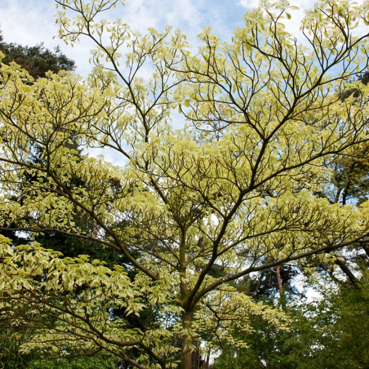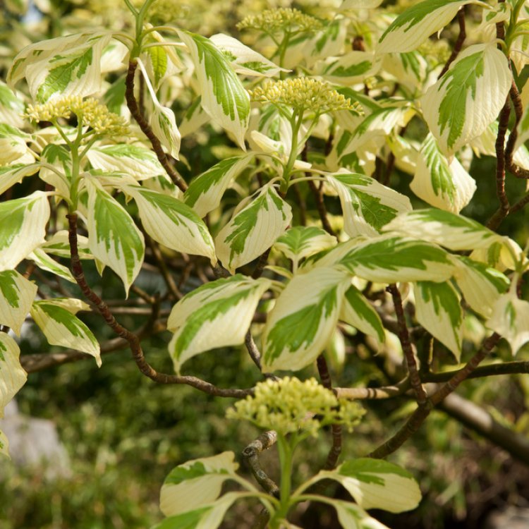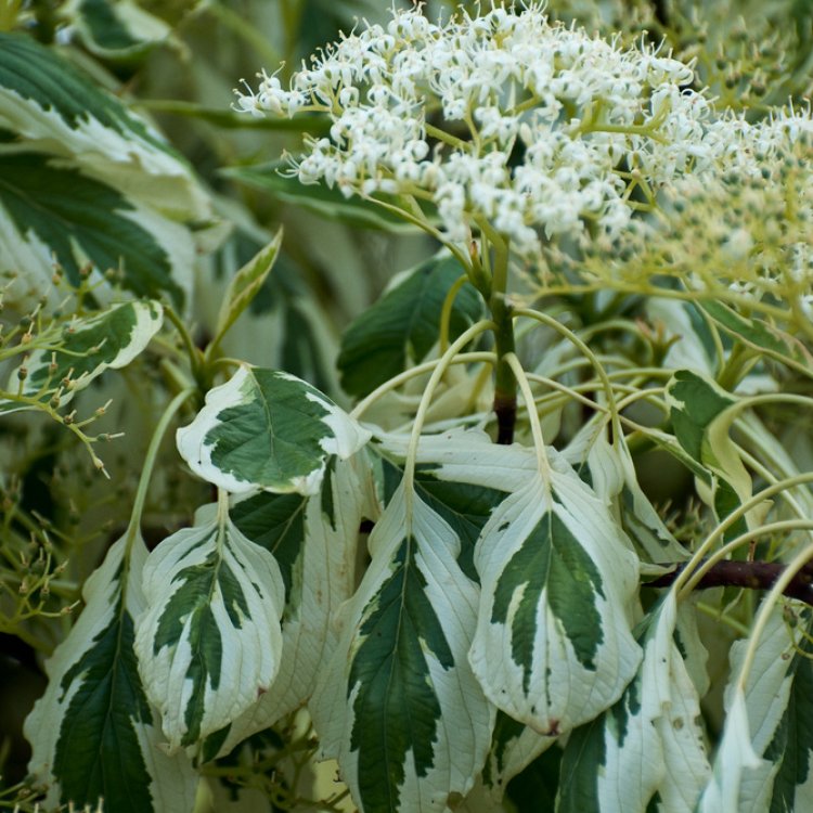 Cornus controversa ‘Variegata’ is a stunning deciduous tree, celebrated for its striking variegated foliage and distinctive tiered branch structure, a true garden showstopper.