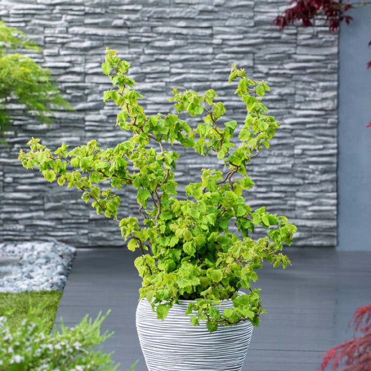 Corylus avellana Medusa is generally low maintenance. Water regularly during dry spells, especially in its first year, to establish a strong root system. Minimal pruning is needed; remove any dead, damaged, or crossing branches in late winter when the plant is dormant. You can also lightly prune to maintain its desired shape or size. Avoid heavy pruning unless coppicing to encourage fresh, strongly twisted growth, which is typically done every few years. Feed with a balanced general-purpose fertiliser in spring to support healthy growth. Monitor for common hazel pests like aphids or diseases, though it is generally robust.