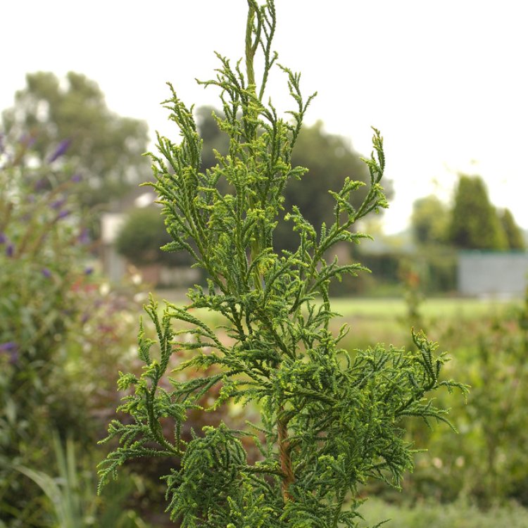 Water regularly during its first year to ensure establishment. Once mature, Cryptomeria japonica 'Rasen' tolerates average moisture but thrives in consistently moist, well-drained soil. Apply a layer of organic mulch around the base to help retain soil moisture and regulate temperature. Minimal pruning is required, typically only to remove any dead, damaged, or wayward branches to maintain its desired shape and health. Protect from very exposed, strong winds, especially in colder months, as this can cause browning of the foliage.