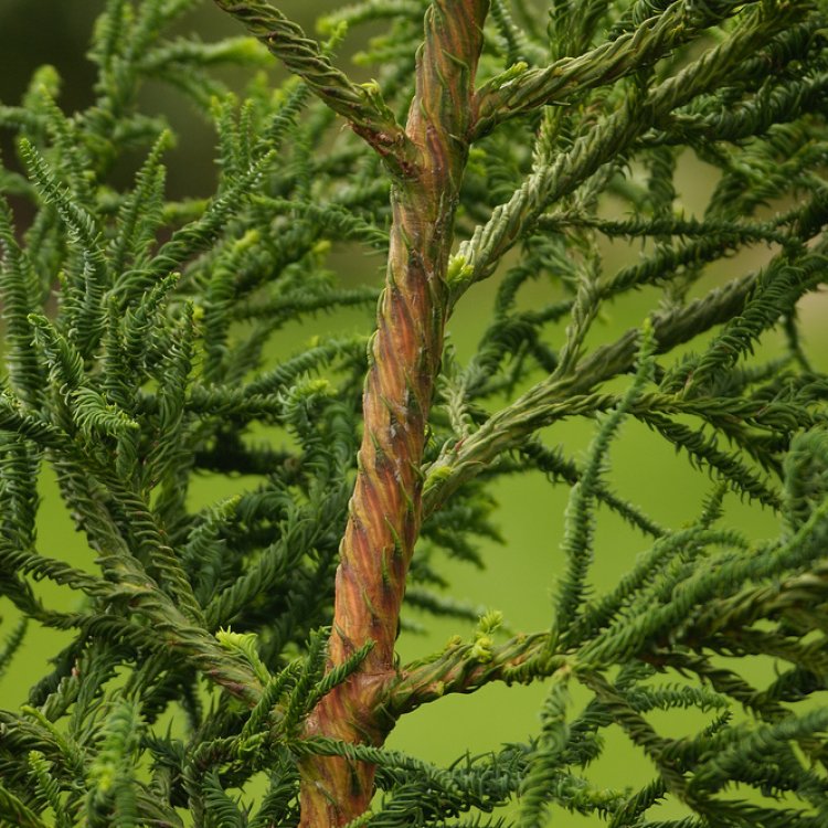 The defining feature of Cryptomeria japonica ‘Rasen’ is its incredibly unique foliage. Each needle, bright green in colour, twists and spirals around the stems. This creates an appearance reminiscent of a miniature, windswept tree. The foliage remains evergreen, ensuring continuous visual appeal through all seasons.