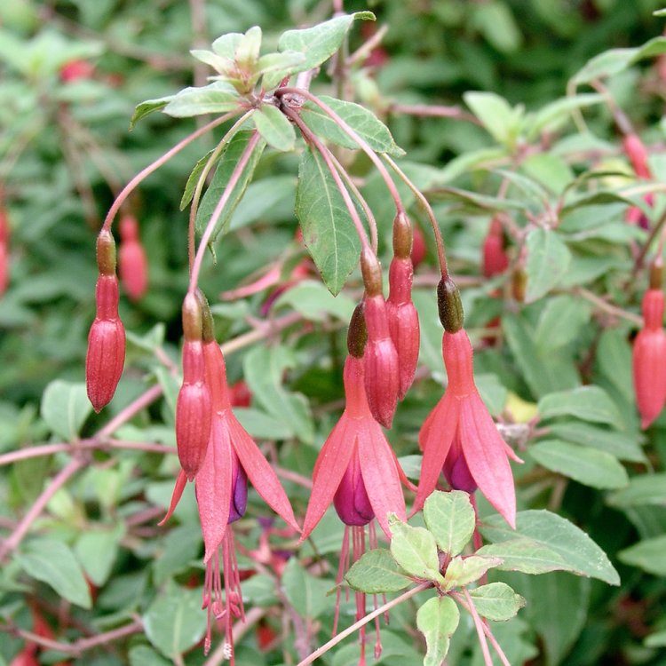 Pruning this fuchsia helps maintain its shape and vigour. We recommend cutting back established plants in late spring, after the risk of severe frost has passed. This encourages new growth and ensures an even more spectacular display of flowers in the coming season. Generally, remove any dead or weak stems first, then shorten the remaining framework to a desired height. This simple task keeps the plant healthy and floriferous.