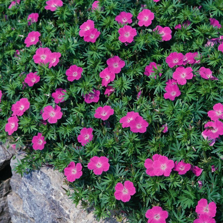 The flowers perch delicately above a dense mat of finely divided, dark green leaves. This deeply lobed foliage offers wonderful textural contrast. It remains attractive from spring through to first hard frosts. As seasons change, leaves often transform to red and orange, extending its visual appeal.