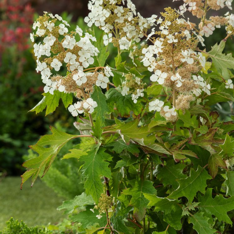 This particular oakleaf hydrangea develops bold, deeply lobed leaves. These leaves indeed mimic those of an oak. They provide a wonderful backdrop throughout spring and summer, adding a robust textural element to any planting scheme.