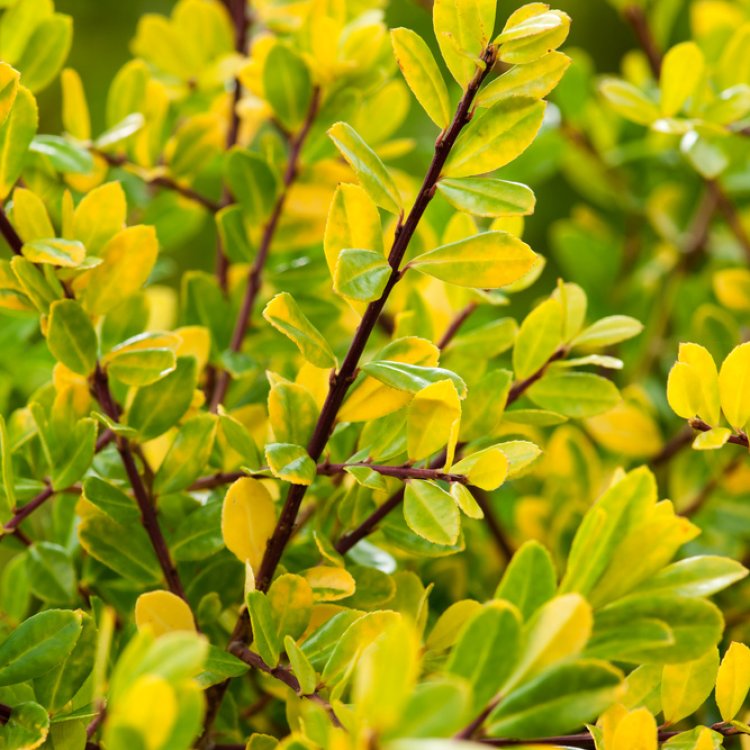This plant showcases small, oval, glossy leaves, which emerge a brilliant golden-yellow. These leaves maintain their vibrant hue all year, offering exceptional contrast in mixed borders. In late spring to early summer, typically around May to June, inconspicuous white flowers appear. While not showy, these flowers are important. Consequently, they attract essential pollinating insects. This particular cultivar produces few or no berries.