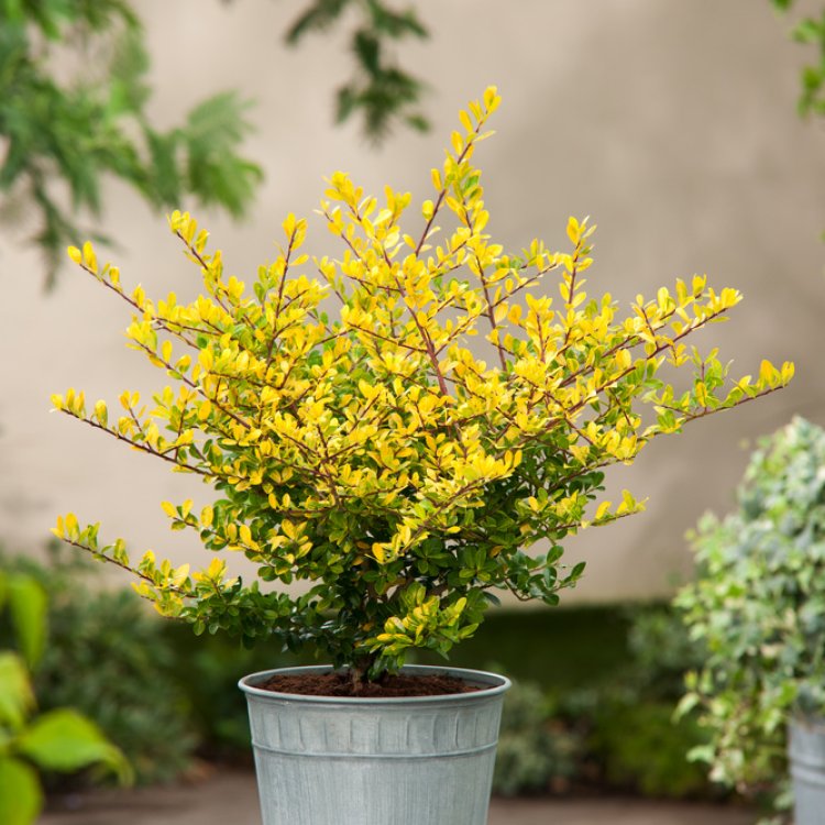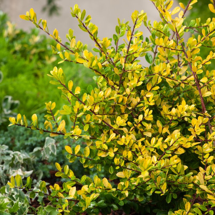 Introduce the captivating Ilex crenata ‘Golden Gem’, a vibrant evergreen shrub, perfect for adding golden brightness and structure to UK gardens.
