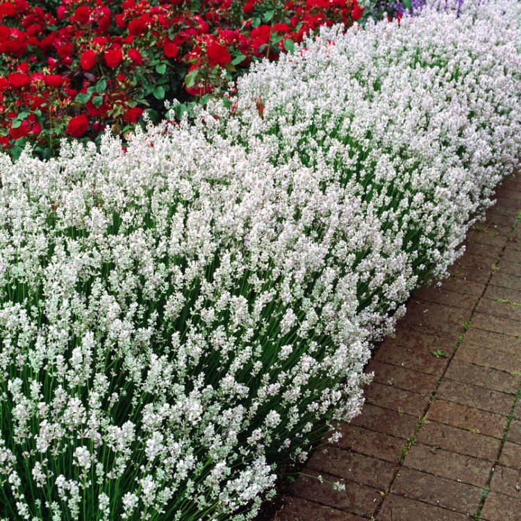 The compact nature of this white English Lavender makes it perfect for many garden roles. You can use it to create formal or informal hedging. It also excels as an edging plant along paths or borders, clearly defining garden beds. It suits cottage gardens, Mediterranean-themed landscapes, and rock gardens very well. Its bright, airy flowers help to lighten up any area. Also, it grows happily in pots, making it perfect for patios, balconies, or smaller urban spaces.