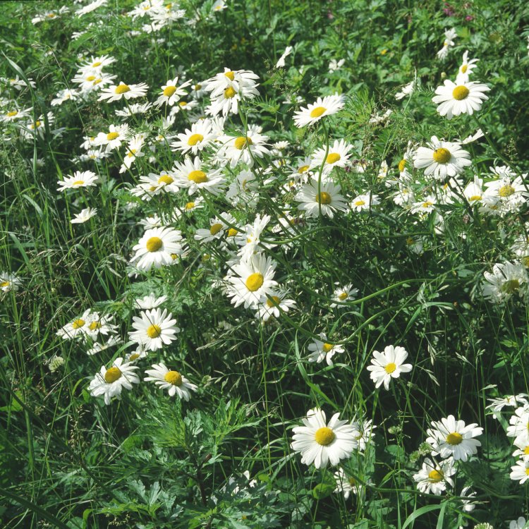 Unveil the simple beauty of Leucanthemum vulgare, also known as the Ox-eye Daisy, a classic British wildflower bringing cheerful white blooms to your garden.