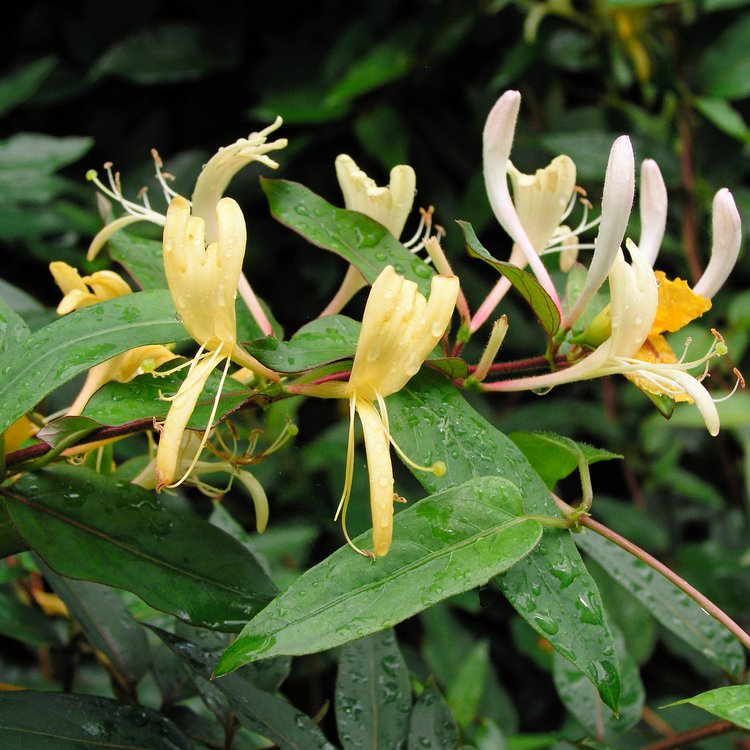 Discover Lonicera japonica ‘Halliana’, a vigorous Japanese honeysuckle known for its fragrant, creamy-white flowers and lush green foliage.