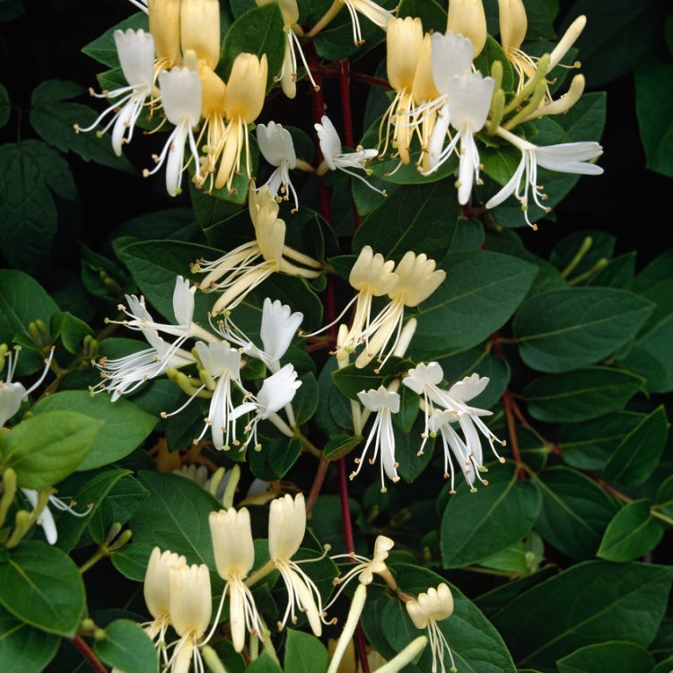 Water Lonicera japonica 'Halliana' regularly after planting until it establishes a robust root system. Provide a sturdy support structure like a trellis, arbour, or wires for its vigorous climbing stems. Prune annually after the main flush of flowers, typically in late autumn or early spring, to control its size, maintain a desired shape, and encourage a prolific display of new blooms. Remove any dead, damaged, or weak growth, and thin out overcrowded stems to improve air circulation. This honeysuckle tolerates harder pruning if it becomes overgrown, allowing for rejuvenation.