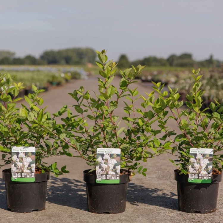 Lonicera purpusii 'Winter Beauty' is generally low maintenance. Plant in well-drained soil in a sunny or partially shaded spot. Water regularly during dry spells, especially when establishing. Prune after flowering in late winter/early spring to maintain shape and vigour, removing old or congested stems. This encourages a strong display for the following season. Protect young plants from severe frost.