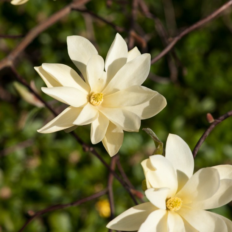 Magnolia ‘Gold Star’ graces UK gardens with stunning, pale yellow, star-shaped flowers each spring. Its unique blooms appear on bare branches, bringing early colour and elegance before the foliage emerges, offering a truly captivating display.