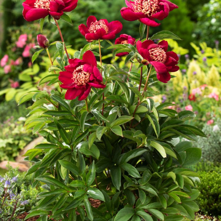 Furthermore, this peony provides a magnificent display during late spring and early summer. Its lush, dark green foliage creates a beautiful backdrop, thus enhancing the visual impact of the blooms. As the season progresses, the foliage maintains its attractive appearance, offering sustained interest.