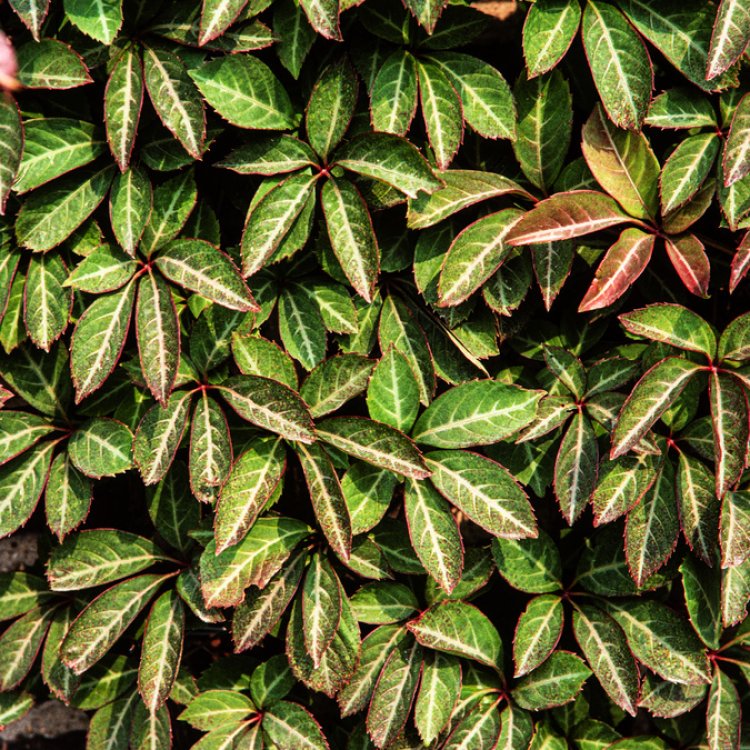 The leaves of Parthenocissus henryana are its most celebrated feature. Each palmate leaf consists of five distinct leaflets. They emerge in spring with a vibrant green hue, deeply veined with contrasting silver-pink markings. These striking veins provide a velvety texture and an elegant appearance throughout summer.