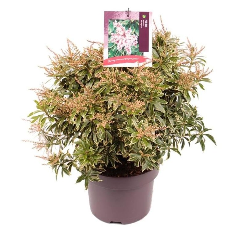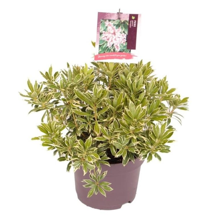 Discover Pieris japonica ‘Variegata’, an exquisite evergreen shrub, celebrated for its vibrant variegated foliage and elegant spring flowers, bringing year-round interest to UK gardens.