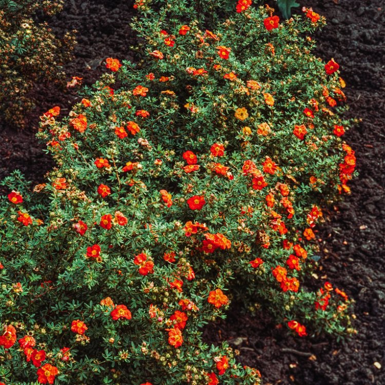 Potentilla fruticosa 'Red Ace' is low-maintenance. Water regularly during dry spells, especially in its first year. Apply a balanced fertiliser in spring to support healthy growth and flowering. Prune lightly in late winter or early spring by removing any dead, damaged, or weak stems, and shape to maintain a compact form. This encourages fresh growth and more abundant blooms throughout the season. Mulch around the base with organic matter to retain moisture and suppress weeds.