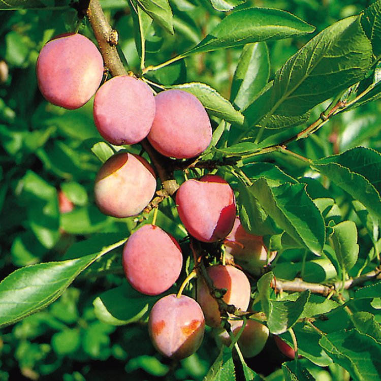 Prunus domestica 'Opal' thrives with a few key care practices. Water deeply and regularly, especially during dry spells and when the fruit is forming, ensuring the soil remains consistently moist but not waterlogged. Apply a balanced fertiliser in early spring to support healthy growth and fruit production. Prune in summer to maintain an open canopy, remove any dead, diseased, or crossing branches, and to manage its size and shape. This also helps improve air circulation and sunlight penetration to the ripening fruit. Protect young trees from pests and diseases, monitoring regularly for any issues. Ensure adequate drainage to prevent root problems, particularly in heavier soils.