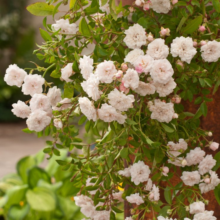 Pruning this resilient rose is straightforward. Typically, a light annual prune in late winter or early spring maintains its shape and vigour. Regular deadheading encourages more flowers to appear, extending its breathtaking display.