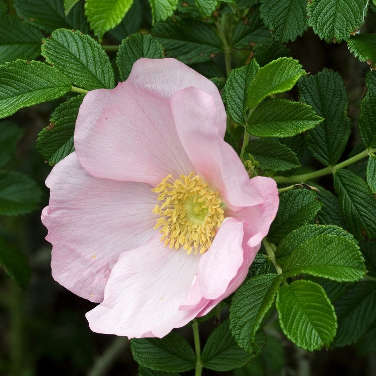 Rosa Dagmar Hastrup is a low-maintenance rose. Water regularly during dry spells and in its first year to help establishment. Apply a balanced rose fertiliser in early spring as new growth emerges. Prune in late winter or early spring to remove any dead, diseased, or weak stems, and to maintain shape. You can deadhead spent flowers to encourage further blooming, or leave them to develop into attractive hips for autumn and winter interest, which also provides food for birds. This cultivar shows good resistance to common rose diseases.