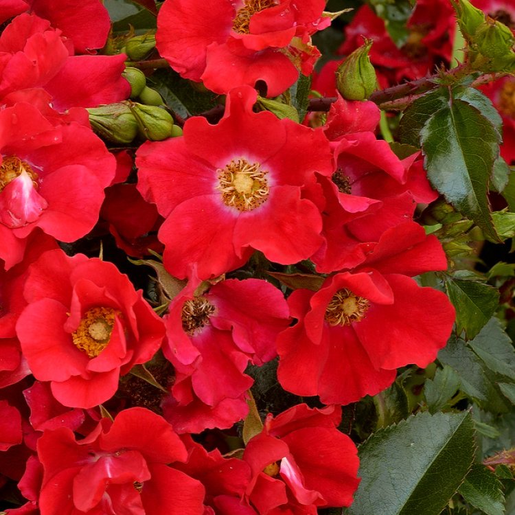 This rose produces masses of dainty, semi-double flowers, each about 3-4 cm across. They appear in generous clusters, creating a blanket of colour that brightens borders and pathways. As a result, the plant ensures a cheerful presence from early summer until the first frosts. Moreover, the small, dark green leaves are wonderfully glossy and provide a healthy backdrop to the vibrant flowers. This foliage exhibits strong disease resistance, helping to keep the plant looking fresh and verdant throughout the growing season.