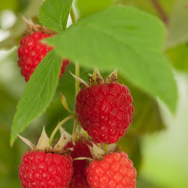 In late spring, Rubus idaeus ‘Malling Promise’ develops small, white flowers. These highly attract vital pollinators, especially bees. Bees visit them, ensuring excellent fruit set. Soon, flowers transform into large, conical berries. They ripen vibrant, glossy red. These raspberries offer sweet flavour and firm texture. They are superb for fresh eating, desserts, jams, or freezing.