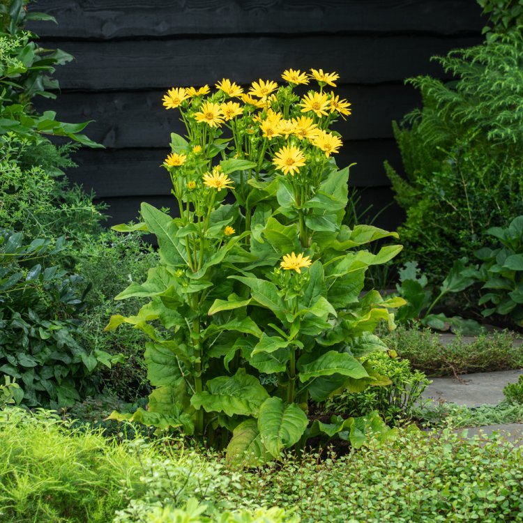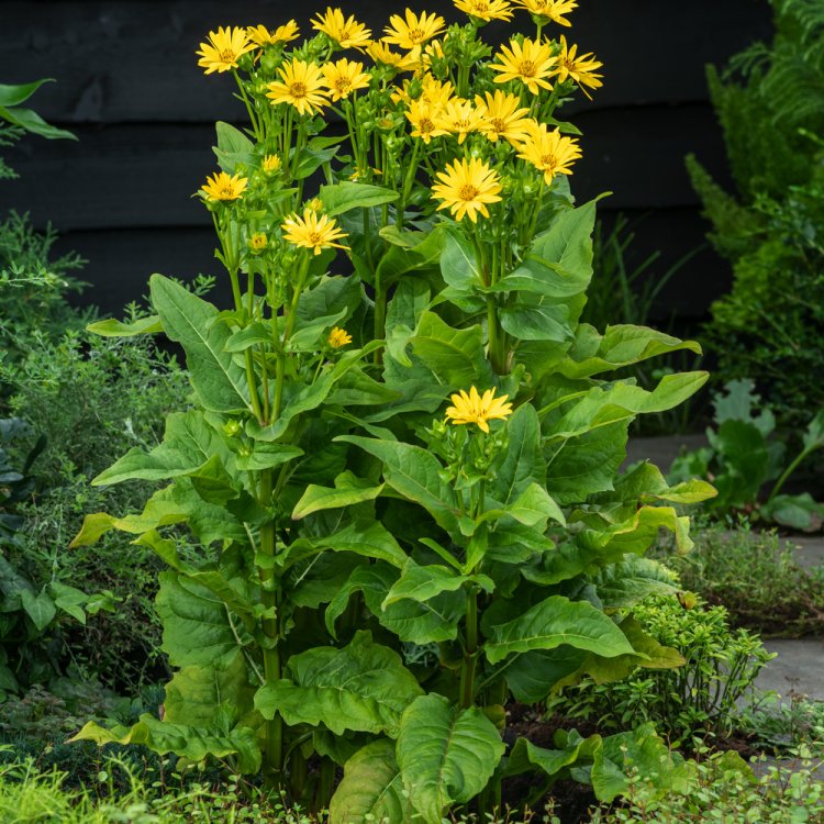 Silphium perf. JS Maya is a remarkable perennial, offering a striking display of vibrant yellow flowers and unique architectural form throughout the UK summer.