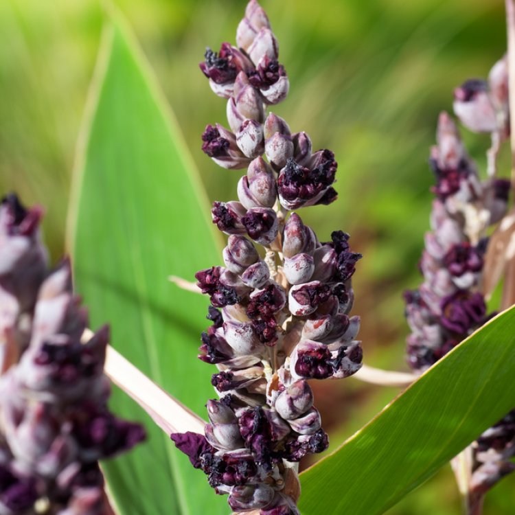 • Elegant spikes of small, vibrant purple flowers appearing high above the foliage.