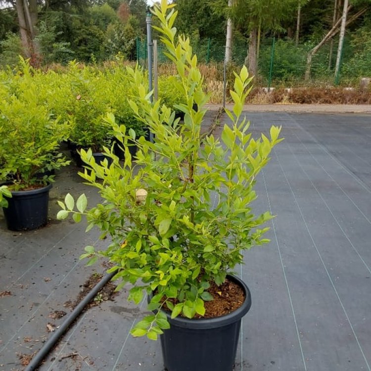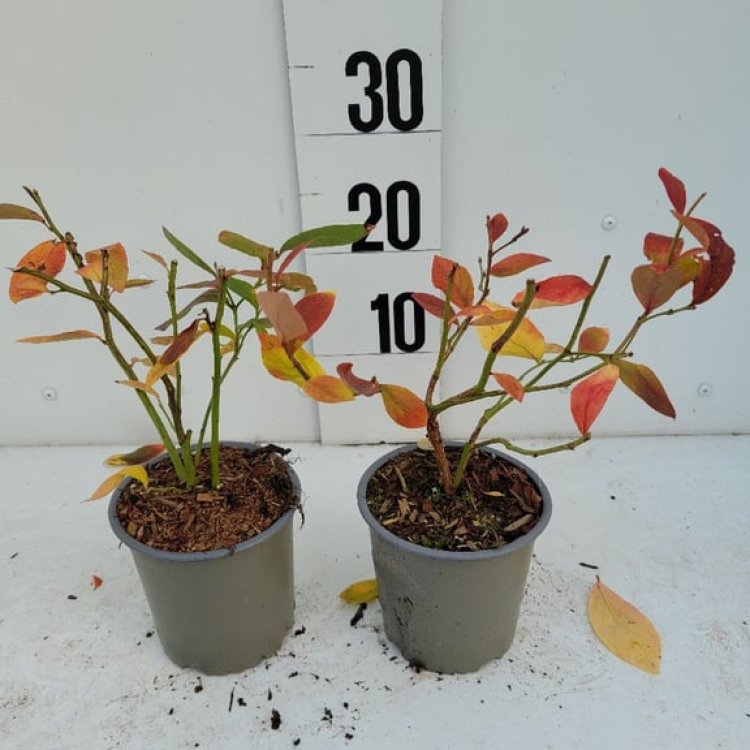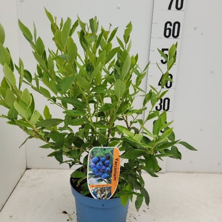 Blueberries thrive in acidic soil (pH 4.5-5.5). Plant in a sunny or partial sun spot in well-drained, humus-rich compost. Water regularly, especially during dry spells and fruit development. Mulch annually with pine needles, bark, or ericaceous compost to maintain soil acidity and moisture. Feed in spring with a specific ericaceous fertiliser. Prune in late winter or early spring by removing any old, unproductive wood and weak growth to encourage new shoots and better fruit production. Protect developing berries from birds with netting if necessary.